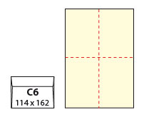 | Le format C6 (11,4 x 16,2 cm) pour une feuille A6 (un A4 plié en quatre). | ![]() |