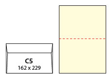 | Le format C5 (16,2 x 22,9 cm) est adapté à une feuille A5 (soit un A4 plié en deux). | ![]() |