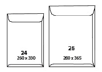 | Les formats C4 (22,9 x 32,4 cm), 24 (26 x 33 cm) ou 26 (28 x 36,5 cm) soufflet sont destinées pour des volumes plus épais (dossiers catalogues,…). | ![]() |
